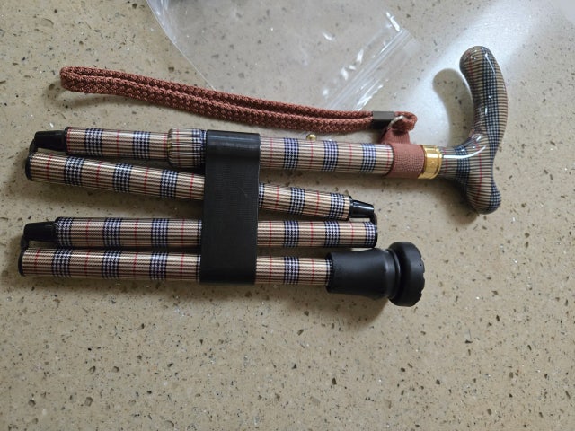 클래식케인즈 베이지 타탄체크 접이식지팡이 4652E